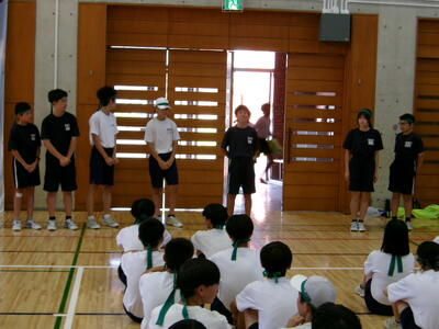 ▼第2体育館で、応援練習の休憩時間に黙々と掃除をしている子ども達。誰がお願いしたわけでもなく、こうしたことを自然にできるのです。やっぱりすごい子ども達です。