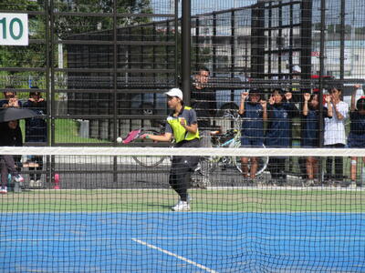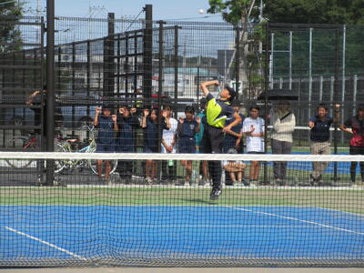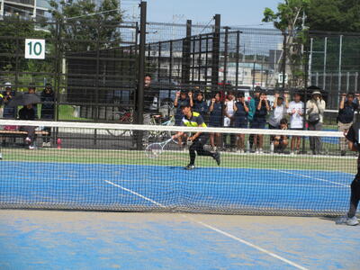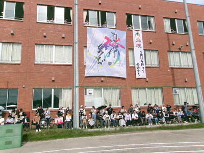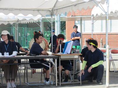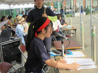 グラウンド内参観スペースは、立ち見スペースと着席スペースに分かれます。着席スペース(約280席)では、第1体育館横参観スペースで立ち見をされる方が参観できるようにするため、必ずイスに座って参観してください。