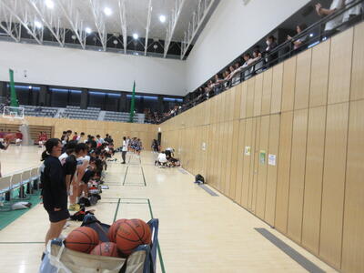 第1体育館横参観スペースに向かう途中の渡り廊下では、立ち止まらないようにお願いします。