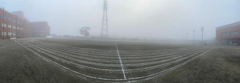 朝は深い霧に包まれていますが、時間とともにこの霧も晴れ、最高のコンディションで体育祭が開催できそうです。