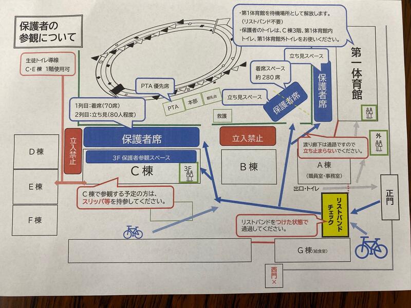 ※リストバンドがない方は入場できません。詳しくは、先日配付した「体育祭の保護者参観について」をご確認ください(本日改めて配信します)。