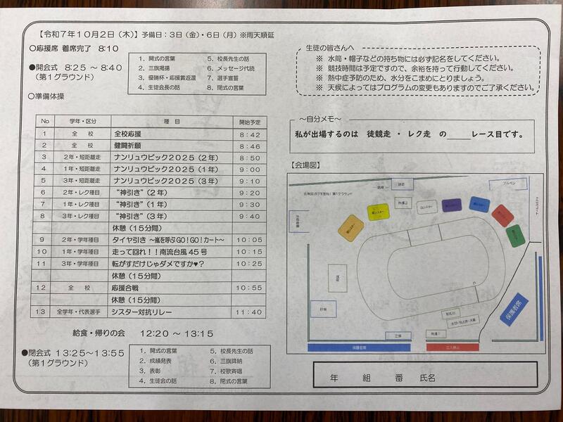 ☆10月 2日(木)体育祭、予定通り実施【プログラム付き】!!