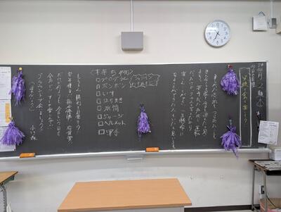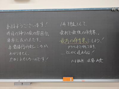早朝の各教室の黒板には、担任の先生や子ども達にかける思いがぎっしりと書かれています。