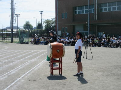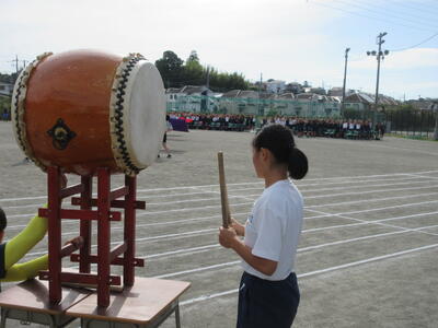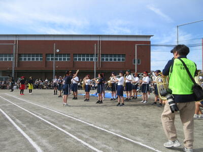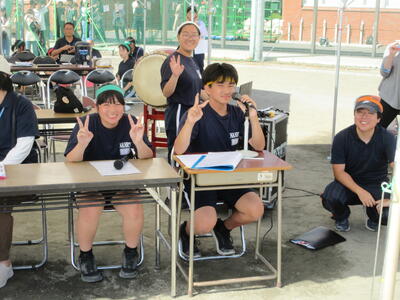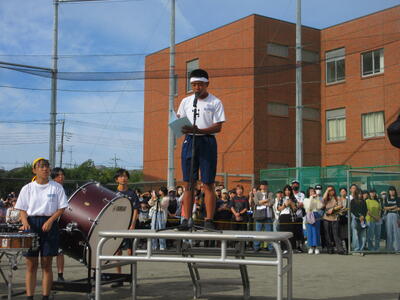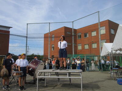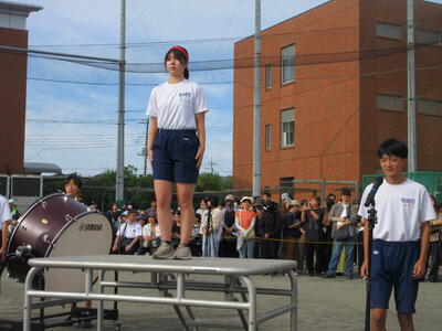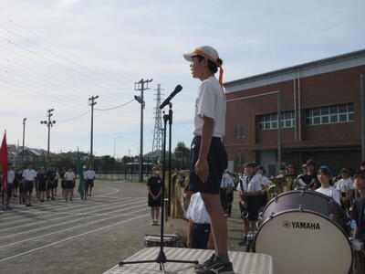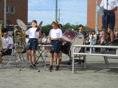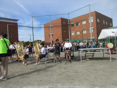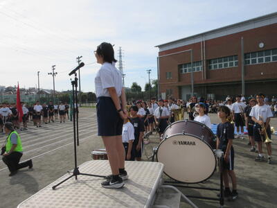 ▼吹奏楽部による体育祭開始のファンファーレが響き渡ります。待ちに待った体育祭の幕開けです!!