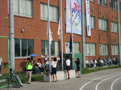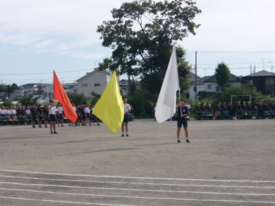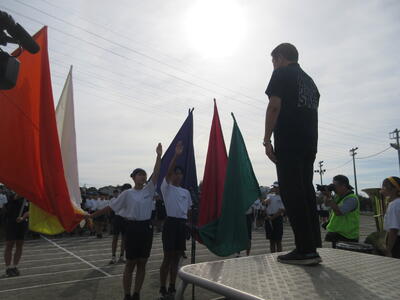▼三旗掲揚。吹奏楽部の見事な演奏が響き渡ります。