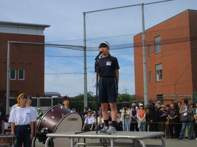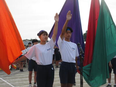 ▼選手宣誓。堂々とした態度で今日の体育祭の成功を誓います。