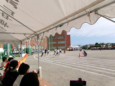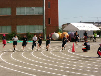 個人種目の最初は「徒競走」。一人ひとりが自分の持てる力を存分に発揮します。誰一人としてふざけたり、手を抜いたりする子がいません。こんなに一生懸命な子ども達。すごいです!!