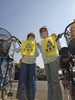▼西松屋の通りや思井福祉会館前の交差点では、今日もPTAのボランティアの皆さんや田中前教育長が立ち、子ども達の安全を確実に守ってくださっています。暑い中、本当にありがとうございます!!