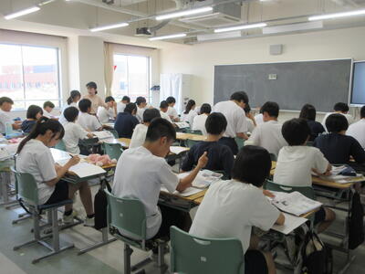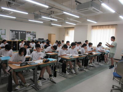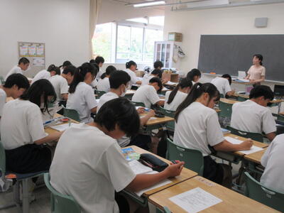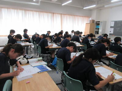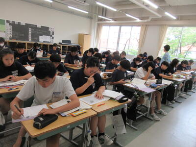 ▼英語のテストに立ち向かう2年生達。