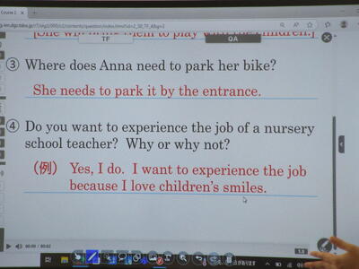 ▼1年生の英語の授業。子ども達、実によく反応しています。