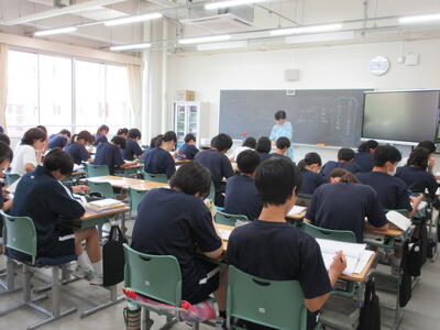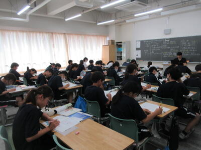 ▼前期中間試験の2日目がスタートしました。下は3年生の様子。みんな、頑張れ!!