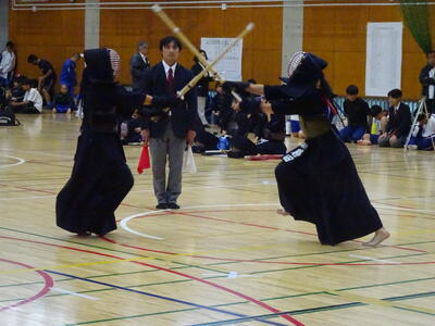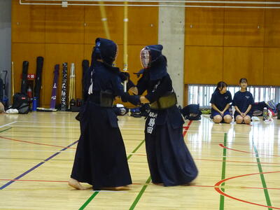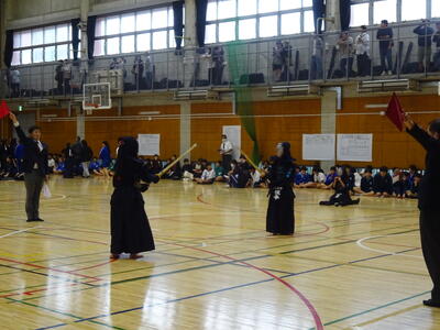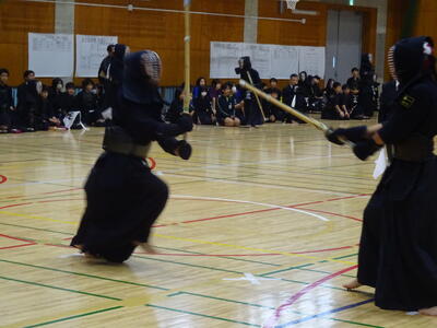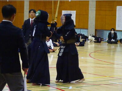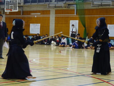 女子個人戦には、山田、勝田、織田、鈴木(2年生)、添田、春成(1年生)が出場!団体戦優勝チームとして、個人でも一人ひとりが稽古の成果を発揮して戦いました!その中で、山田、勝田の二人が準決勝に進出!お互い、あと一つ勝てば県大会出場、南流中同士の決勝戦、というところでしたが、惜しくも決勝には上がれず、第3位となりました。県大会には一歩届きませんでしたが、葛北第3位は立派な成績です!二人とも、きっと今日の経験をこれからの成長の糧にして、さらに大きな舞台で活躍できることでしょう!!