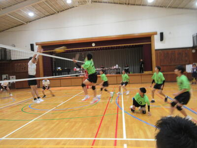 笑顔あふれ、互いに声を掛け合い、フォローし合うバレー部の子ども達。そして、応援の子ども達も体育祭の勢いそのままに素晴らしい応援を繰り広げます。本当に良いチームになっているのが分かります。