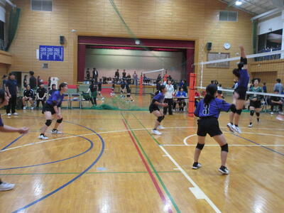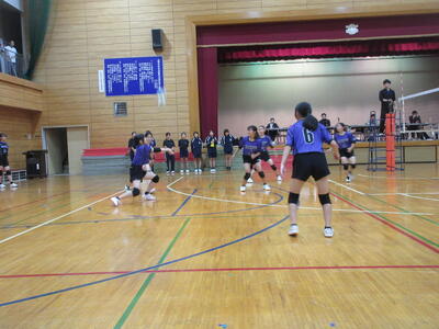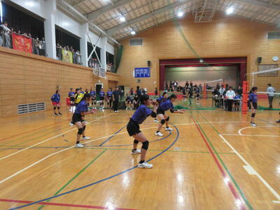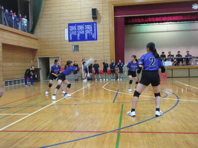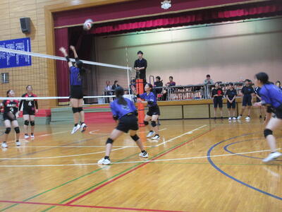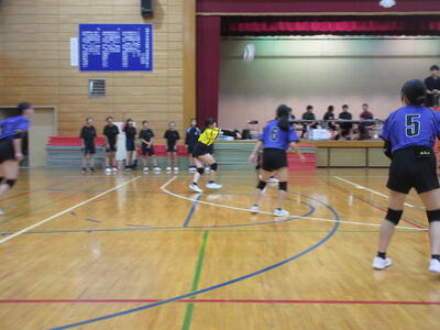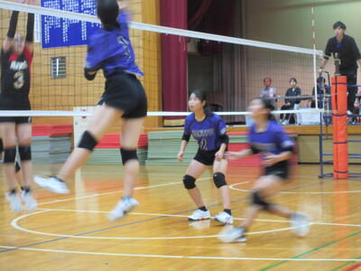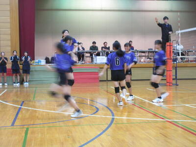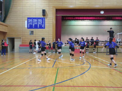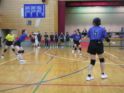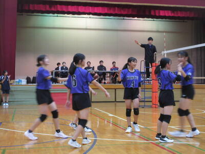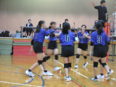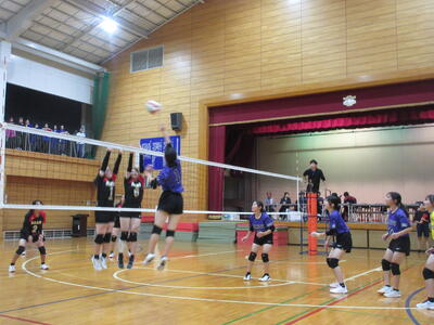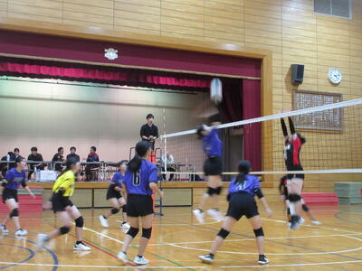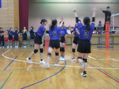 本校女子バレー部は、予選リーグ初戦の東深井中戦を2対1で勝利。2戦目の木間ヶ瀬中戦も2対1と2連勝。予選リーグ1位で決勝トーナメントに進出しました。