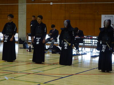 男子団体戦、先鋒別所、中堅鈴木、副将千葉、大将横山、というオーダーで勝負に臨みます!