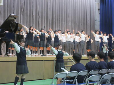 昨年度の芸術鑑賞会で見事なミュージカルや合唱を披露してくださった専修大学松戸高等学校合唱部のみなさん(→当日の様子はこちら)。