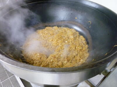 1種類は「あめ色玉ねぎ」と呼ばれる、炒める玉ねぎ用、もう1種類は具材用です。「あめ色玉ねぎ」は、玉ねぎを炒めることで玉ねぎに含まれている「アミノ酸」という成分と、糖分がくっつき、香り成分が引き出されるので、香ばしさがあります