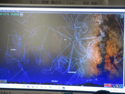 ▼午後の授業の様子。3年生の教室はプラネタリウムのようです。