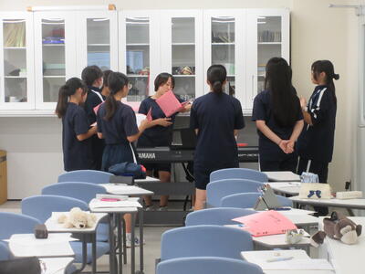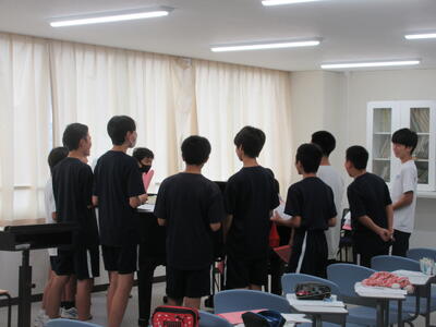 ▼E棟5階の第1・第2音楽室では、2・3年生が音楽の授業。パート毎の合唱練習が行われていました。このフロアは音楽学校という感じです。