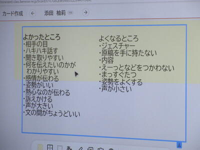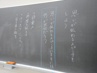▼3年3組6校時、山崎先生の国語の研究授業。「思いが伝わるスピーチをしよう」をテーマに、グループごと話し合いやスピーチ練習が行われています。真剣に、でも楽しそうな子ども達の表情が広がっています。