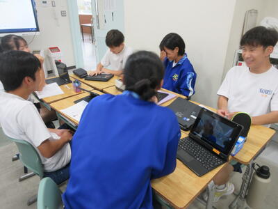 ▼3年生の英語。関係代名詞の学習もとても楽しく行っています。