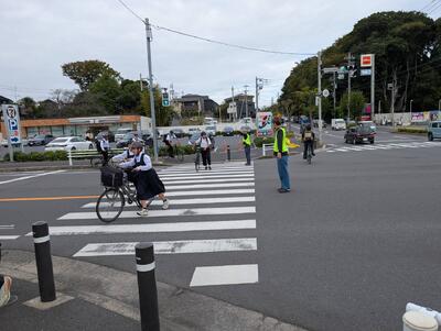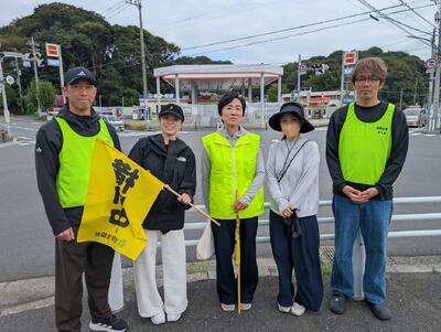 ▼思井福祉会館の交差点では、7時台と8時台それぞれの時間帯に、「チーム南流」の皆さんが集結します。「チーム南流」終身名誉会員の野村さんを始め、田中弘美前教育長、PTAの目黑会長ご夫妻、流小PTA会長の森さん、たまたま散歩中に通りかかった昨年度の南流中広報ボランティアの堀さんの面々。堀さんは、今後も散歩がてらに立ってくださるとのこと。「チーム南流」の輪は広がり続けています!! 子ども達の安全のために、皆さん、本当にありがとうございます!!