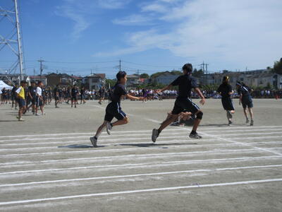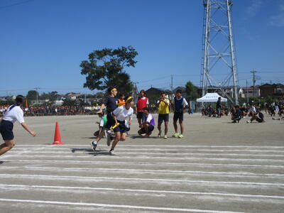 ▼第一走者がスタートしました。大混戦の最終種目を制するのはいったい・・・?