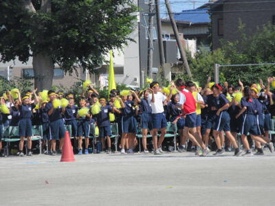 最後は、もう一度全員で輪になって応援を始める子ども達。