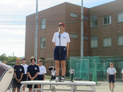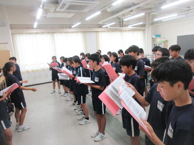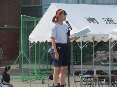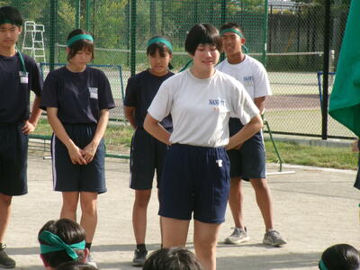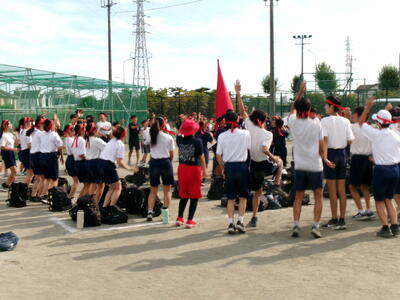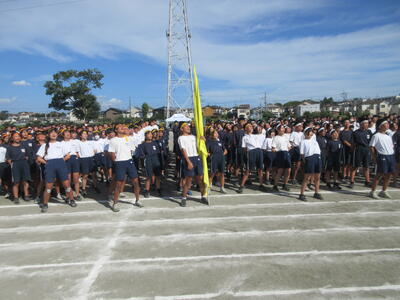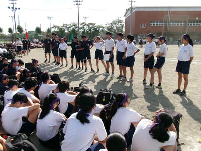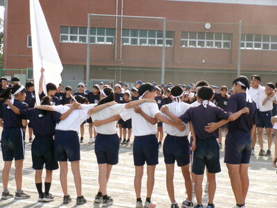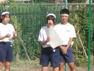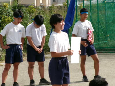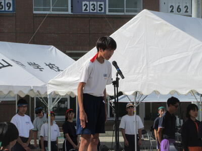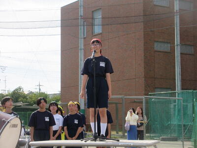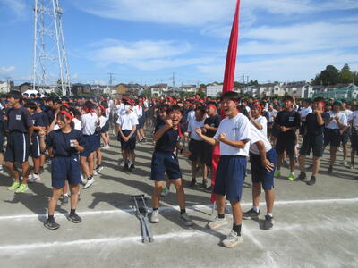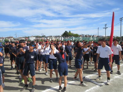 ▼最後は優勝した赤組応援団長の指揮のもと、南流中生としての誇りをもって全校で校歌を歌い上げていきます。
