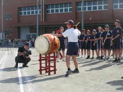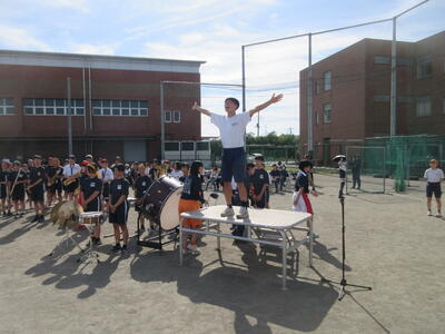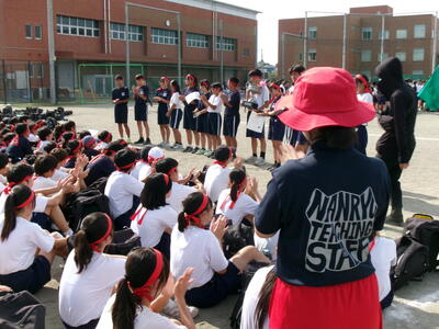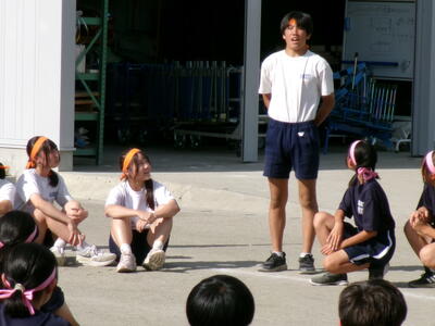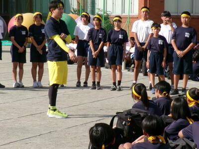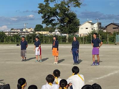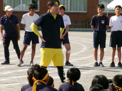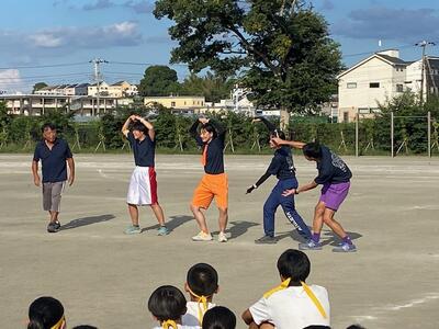 ▼最後は体育科の先生方も登場。ポーズを決めると子ども達は拍手喝采!!