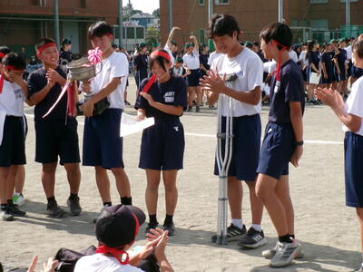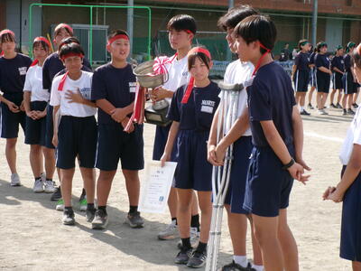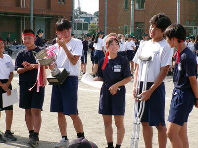 そして、応援賞は青組となりました!! しかし、どのカラーも声の大きさ、工夫、統一感などは申し分の無い出来上がり。ほんの僅かな差で決定した応援賞でした。それでも、全てのカラーが南流中の歴史に残る見事な応援を披露してくれたことは間違いありません。