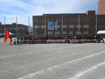 ▼「第43回体育祭」の中心となって頑張ったリーダー全員での集合写真。