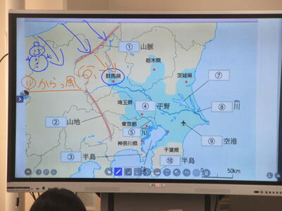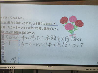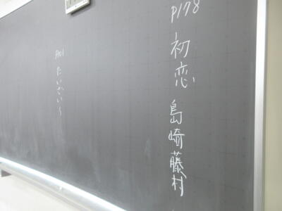 ▼3年生、宮崎先生の国語の授業。島崎藤村の「初恋」の授業にあたって、子ども達に「初恋」について聞いている宮崎先生。恥ずかしそうな表情の子ども達。何とも可愛いですね。