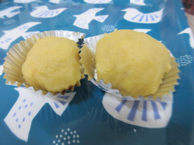 ▼ひまわり学級の子ども達が調理実習で作った「スイートポテト」。みんなとっても上手。ものすごく美味しく仕上がっていました。