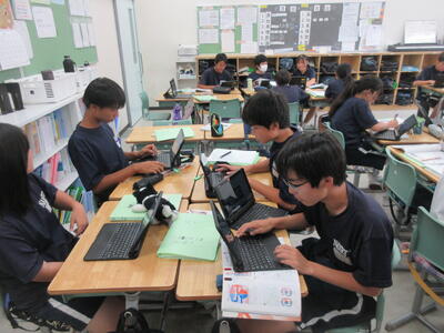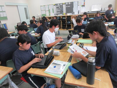 ▼2年生の理科の授業。人間の臓器について、グループで分かれて調べてプレゼンの準備をしていきます。プレゼン授業を経て、どんなにわかりやすく工夫された発表をしてくれるか楽しみですね。