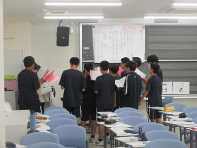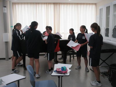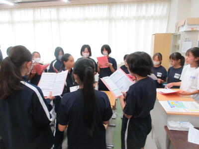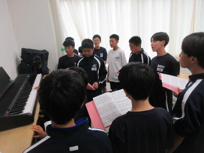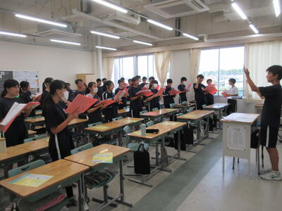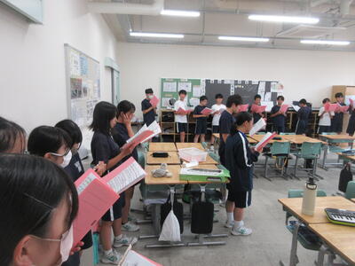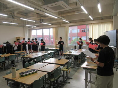 ▼多くの学級では、南風祭に向けて合唱練習が行われていました。1年生の教室からも見事な歌声が響いてきます。