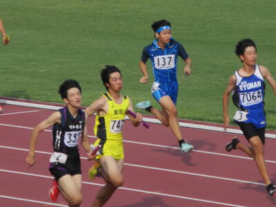 ▼男子4×100mリレー(鈴木涼太さん・木村さん・樋渡さん・岩上さん→決勝進出)