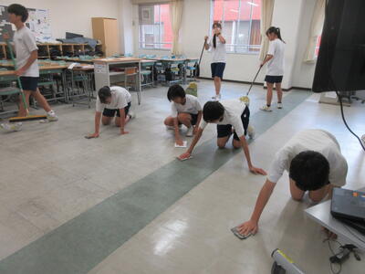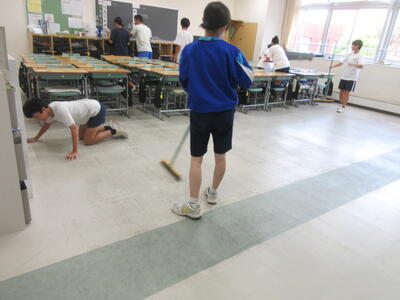 ▼一日が終了し、清掃の時間。3年生の教室を回ると黙々と取り組む子ども達の姿が目に飛び込んできます。自分たちの大切な学校は自分たちの力で絶対にきれいに保つ。そんな意気込みが子ども達の姿からひしひしと伝わってきます。