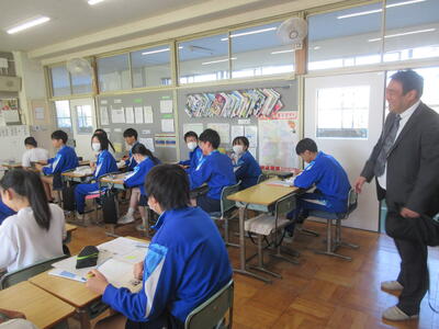 そんな南流中に近隣の小金高校の長束倫夫校長先生がいらっしゃり、せっかくの機会ですので、各教室をご参観いただきました。子ども達は普段と変わらず授業に集中。長束校長先生も、南流中の落ち着いた雰囲気を感じてくださったようです。