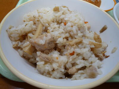 鶏五目ご飯は、鶏に味がしっかりと染みこんでいて、たけのこや油揚げの風味や食感と絡み合い最高の仕上がり。これだけでどんどん食べ進められます。