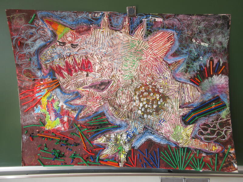 最後のこの作品は、ひまわり学級の美術で作製したものです!!迫力のある生物が描かれています!!