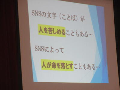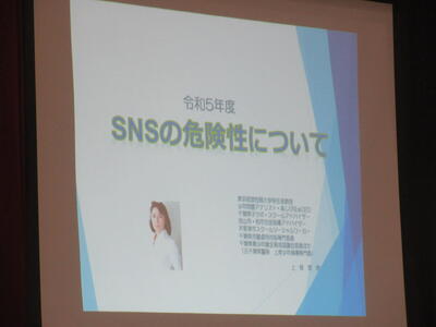 本日、5校時に情報モラル教育研修が行われました。講師は、東京経営短期大学特任准教授、少年問題アナリスト、流山市生徒指導アドバイザーとして、子どもたちが犯罪に巻き込まれないためにご活躍されている上條理恵先生です。上條先生は、ご自身の経験や昨今の事件等を例にあげながら、子どもたちに分かりやすく、SNSをめぐるトラブルや対処方法をお話されました。子どもたちも自分のこととして、上條先生のお話に耳を傾けていました。特にSNSに上げた1枚の自分の写った写真から、いろいろな情報が分かります。写真に映っている制服から高校が特定され、手に持っている鍵の番号で合鍵が作られたり、後ろの背景から住んでる場所が特定されるなど、SNSには、危険がたくさん潜んでいます。SNSは、便利で使い方を間違えなければとても良いものです。でも、少しでも使い方を間違えると自分も被害者にも加害者にもなってしまいます。ぜひ、ご家庭でも今一度、SNSの使い方について話をしてみてください。