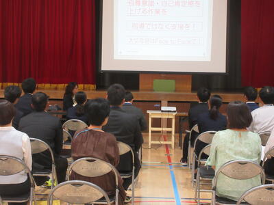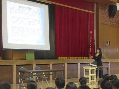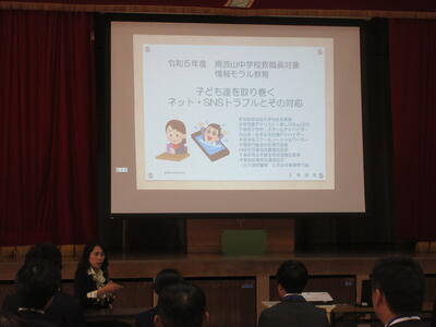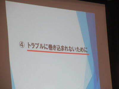 生徒の下校後は、職員向けの情報モラル教育研修がありました。実際にあった、青少年の事件をもとに、どのようなところが問題で、どう対処していたらよいのかなど、さまざまなことを学ぶことができました。何かあった場合には、生徒のみなさんを助けてくれる関係機関はたくさんあります。どうぞ、困ったことがあったら、周りの大人に助けを求めてください。