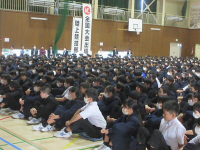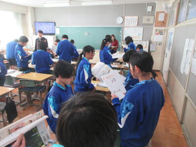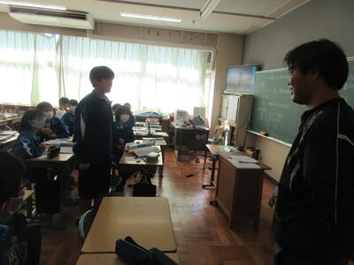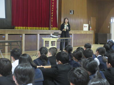 2年生は12月7日(木)6校時、格技場において職場体験の発表会を行いました。様々な職場へ出向き、経験させていただいた2年生達は、自分達の経験をパワーポイントを使って堂々と発表。
