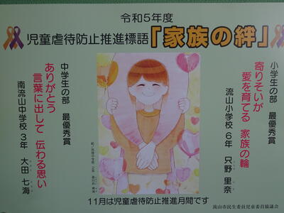 ☆11月 2日(木)温かい心と言葉で地域に貢献!!~児童虐待防止標語『家族の絆』表彰~
