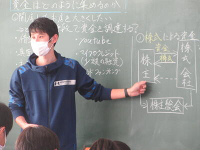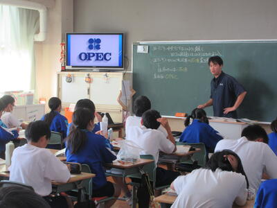 社会科の公民の授業では、「なぜ景気には波があるのか」をテーマにした学習。話し合いを行ったり、自分の考えを発表したり、全員で主体的・対話的な学習が行われています。