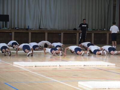 去る10月26日(木)に本校の芸術鑑賞会が開催されました。今年は、テレビ番組『笑点』のメンバーでおなじみの桂宮治師匠に落語を披露していただき、後半は、インタビューと生徒の質疑応答がありました。前半の落語会では、落語の歴史や「一番太鼓」「追出太鼓」を実際の太鼓を使って披露されました。それぞれの太鼓の音には意味があり、約300年前の寄席で行われていたことが今もなお続いています。生徒も、寄席太鼓の体験をし、楽しみながら落語の勉強ができました。また、高座の上で、扇子を使ってそばを食べたり、手ぬぐいを財布に見立てたり、落語の所作を教えてくださいました。その後、小噺をいくつか披露してくださり、落語に入りました。落語の演目は『初天神』でした。生徒は、宮治師匠の話から場面を想像して、体育館には、あたたかな笑いが広がりました。