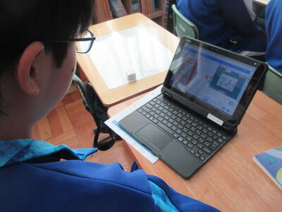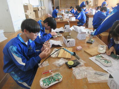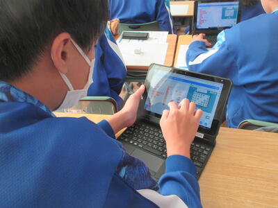 技術科では、「toio」を活用してプログラミングの学習。教室中に子ども達の真剣な表情が広がります。