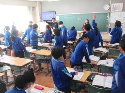 そんな中でも南流中の子ども達は至って冷静。いつも通り集中して授業に臨んでいます。学校で浮かれているのは先生達だけかもしれません(→最下段の写真ご覧ください!)。
