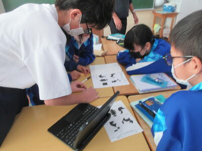 様々な学校で書写教室を行っている先生は、明るく朗らかなお人柄で、元気いっぱい!! 書写の準備運動である筆の動かし方から丁寧にわかりやすくご指導くださいます!